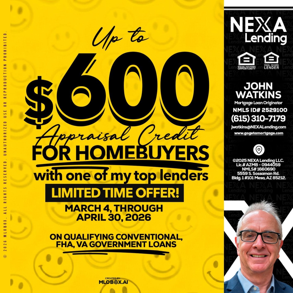 Hi, my name is John Watkins. I’m a Loan Officer with NEXA Lending LLC., offering personalized mortgage solutions, fast customized quotes, great rates and service with integrity.